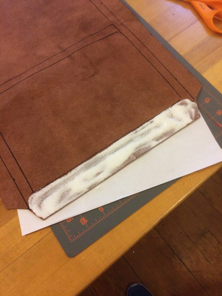 Next I had to glue the parts of the cover to fold over. In the video, the person used hot glue. I don’t have a hot glue gun, so I just used the pva glue I had been using. In the photo below, I can tell you that I used WAY too much glue. It made a big mess.